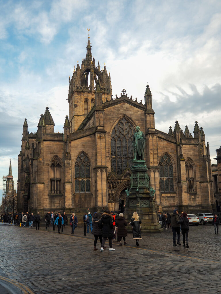 The Royal Mile is the nickname given to the streets around the Old Town of Edinburgh that lead up to the castle. You’ll find all the touristy things in this area like shops selling wool and souvenirs as well as people dressed up in kilts playing bagpipes.
